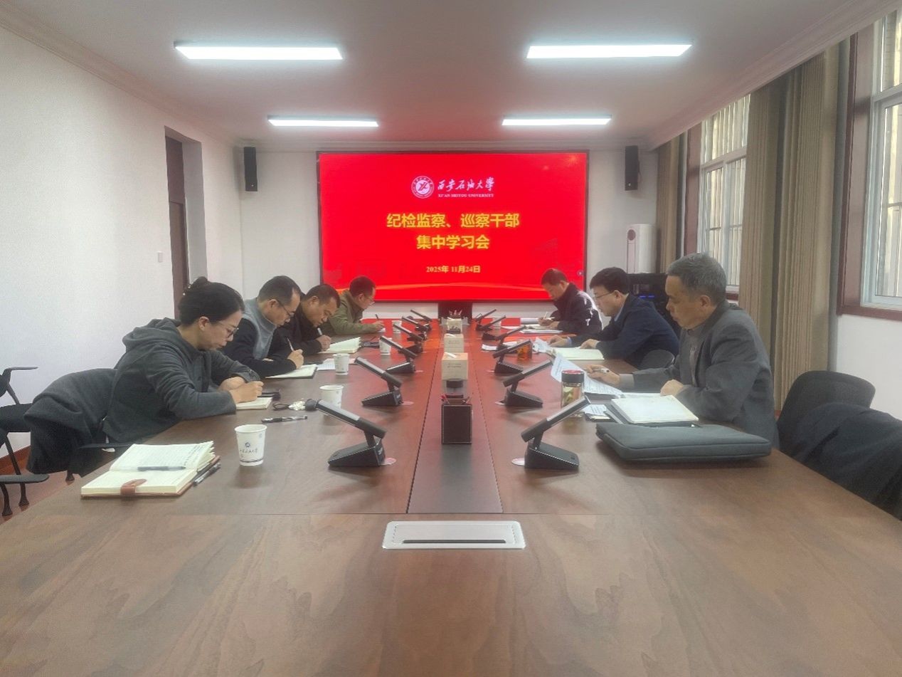 11月25日上午,纪检巡察干部2025年第22次集中学习会在鄠邑校区办公楼第四会议室召开。校党委副书记、纪委书记、监察专员王辉强主持学习会。纪检监察机构、党委巡察工作办公室全体干部参加会议。